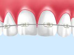 特徴 | メタルブラケットと同じ仕組みですが、プラスチックでできた透明なブラケットを用います。 |
